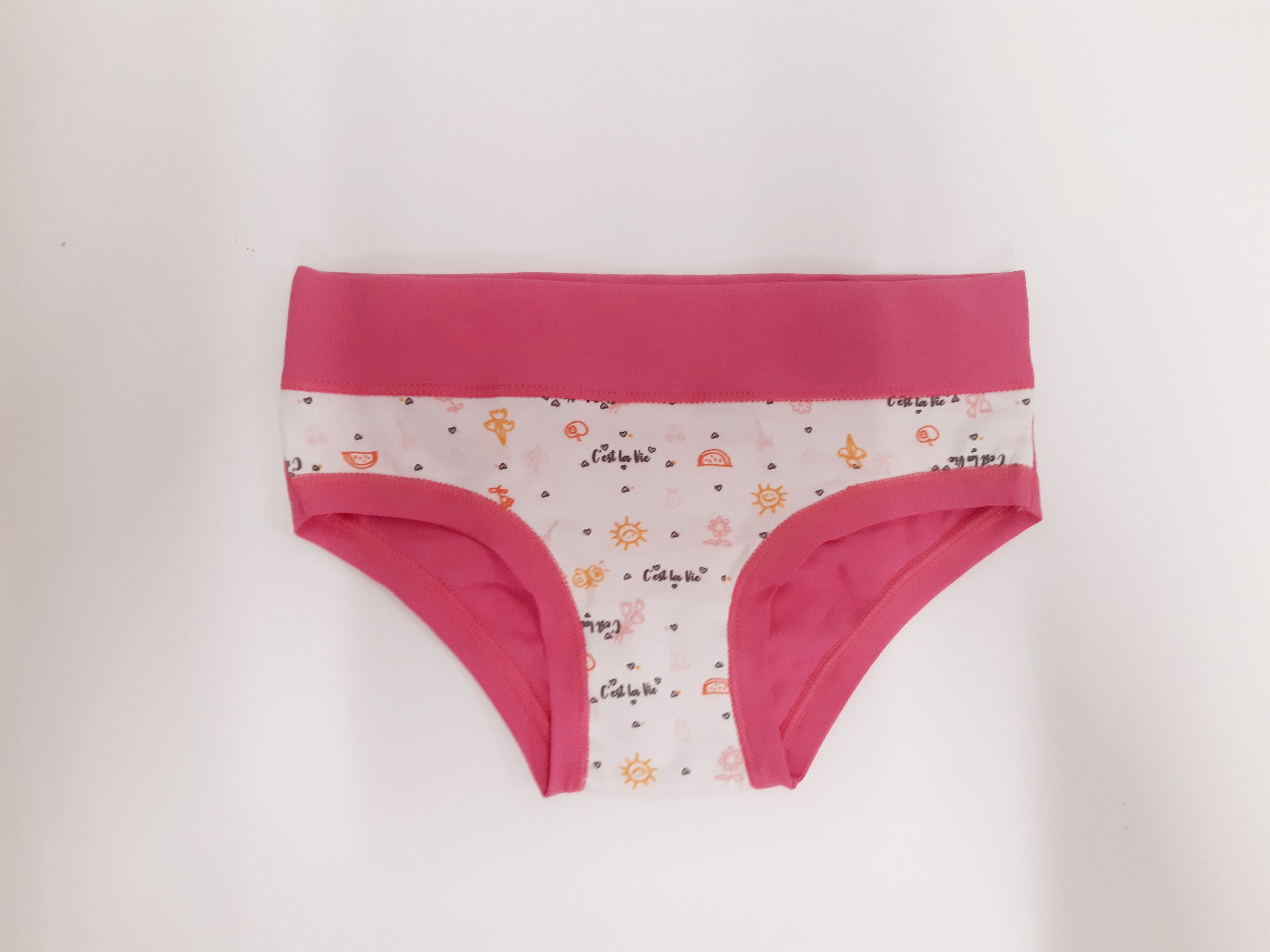 Moderní dívčí kalhotky Emy Bimba jsou velmi oblíbené. Díky kvalitnímu pružnému materiálu, kde je spojeno 90% bavlny a 10% elastanu jsou velmi pohodlné, ale také odolné. Kalhotky mají velmi pěkné, jemné barvy s laděným potiskem obrázku. Obvod v pase tvoří pružný širší úplet, nohavičky jsou volně přeloženy, a proto se nezařezávají. Do vnitřního dílu je všitý bavlněný klínek. Kalhotky nabízíme ve třech barevných variantách.