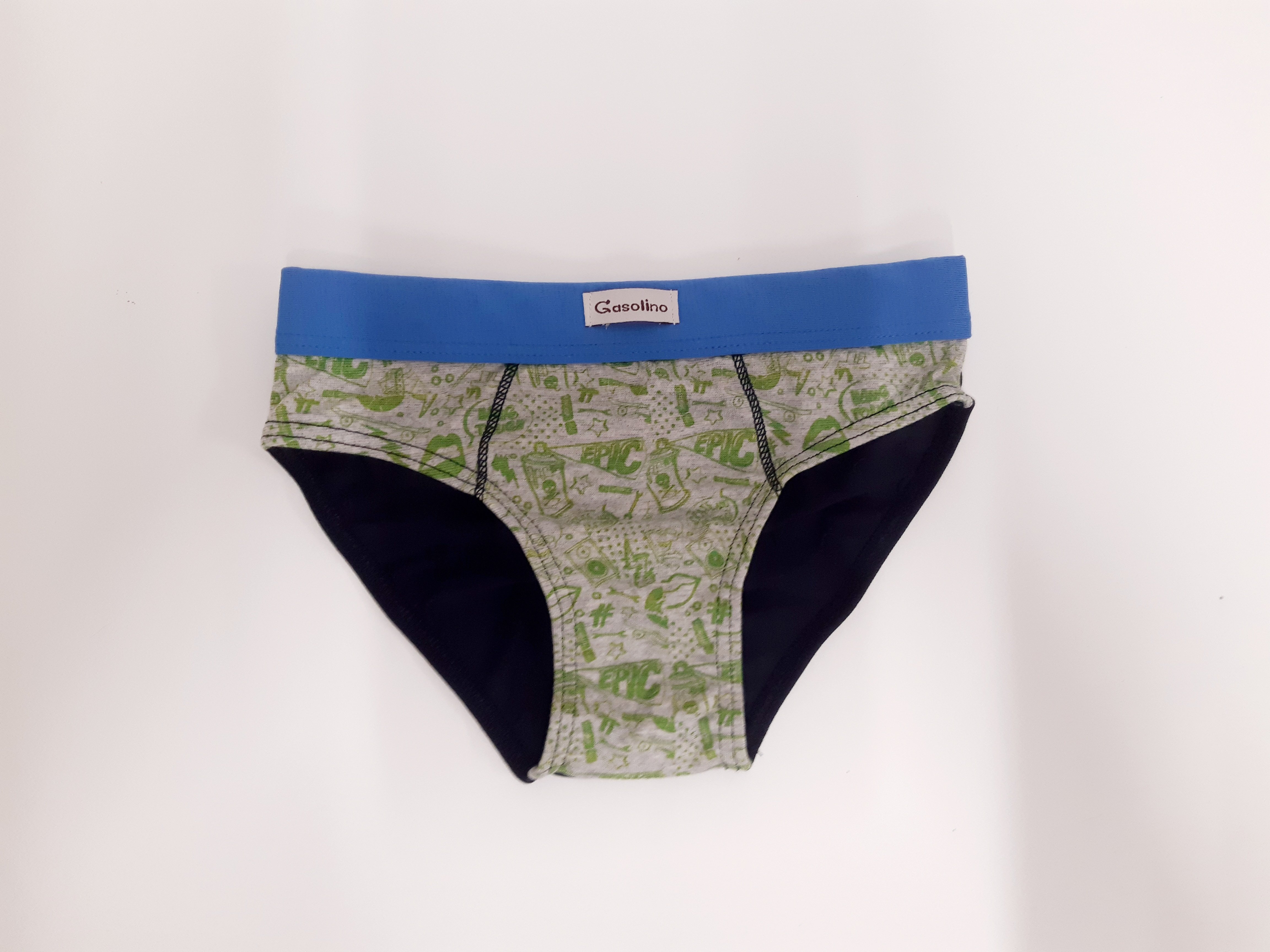 Slipy s fotbalovým vzorem v různém barevném provedeníPovedené chlapecké slipy jsou díky kvalitnímu pružnému materiálu velmi pohodlné, ale také odolné. Slipy mají velmi pěkné, jemné barvy s laděným potiskem obrázku. Obvod v pase tvoří pružná širší zapošitá guma a nohavičky jsou volně přeloženy, a proto se nezařezávají. Do vnitřního dílu je všitý bavlněný klínek. Slipy Gasolino nabízíme ve třech barevných variantách. Materiálové složení je 90% bavlna, 10% elastam. Neváhejte si vybrat své slipy od ověřené značky Gasolino