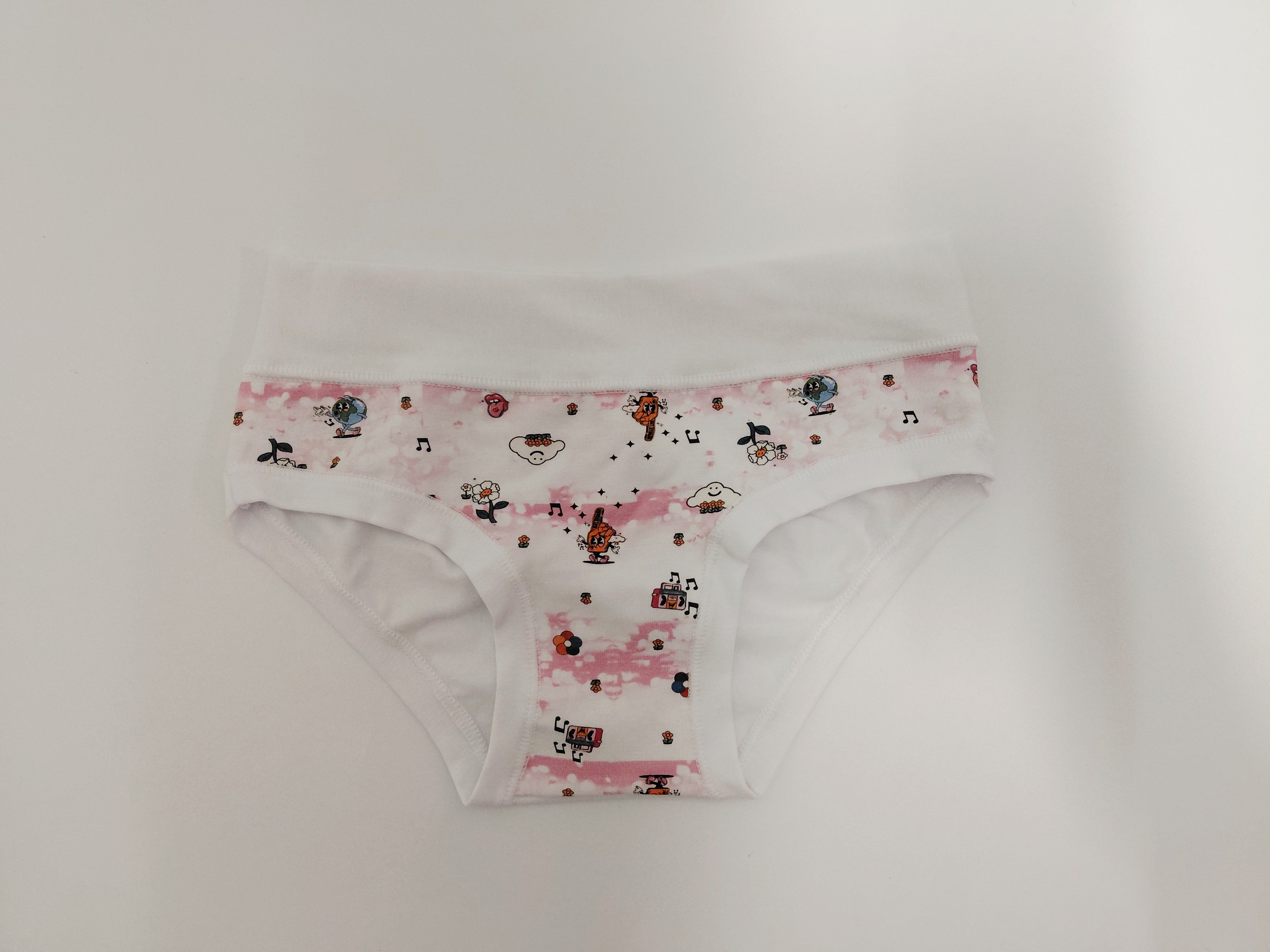 Moderní dívčí kalhotky Emy Bimba jsou velmi oblíbené. Díky kvalitnímu pružnému materiálu, kde je spojeno 90% bavlny a 10% elastanu jsou velmi pohodlné, ale také odolné. Kalhotky mají velmi pěkné, jemné barvy s laděným potiskem obrázku. Obvod v pase tvoří pružný širší úplet, nohavičky jsou volně přeloženy, a proto se nezařezávají. Do vnitřního dílu je všitý bavlněný klínek. Kalhotky nabízíme ve třech barevných variantách.