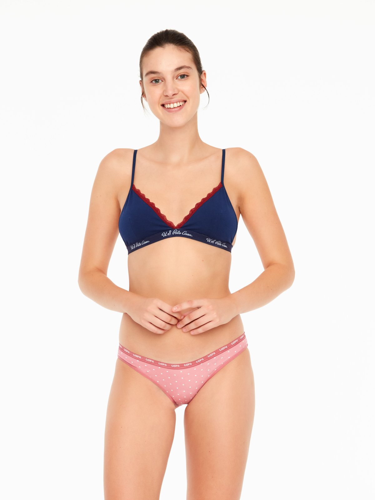 Oblíbené dámské kalhotky U.S.POLO ASSN. klasického střihu. Kalhotky jsou vyrobeny z velmi kvalitní bavlny, která je doplněna o elastan zajišťující ideální pružnost a pohodlí. Kalhotky v pase lemuje decentní gumka, která se nezařezává. Klín je zesílený bavlněnou látkou. Tyto kalhotky pěkně padnou a jejich střih je velmi oblíbený, jsou poměrně pružné.