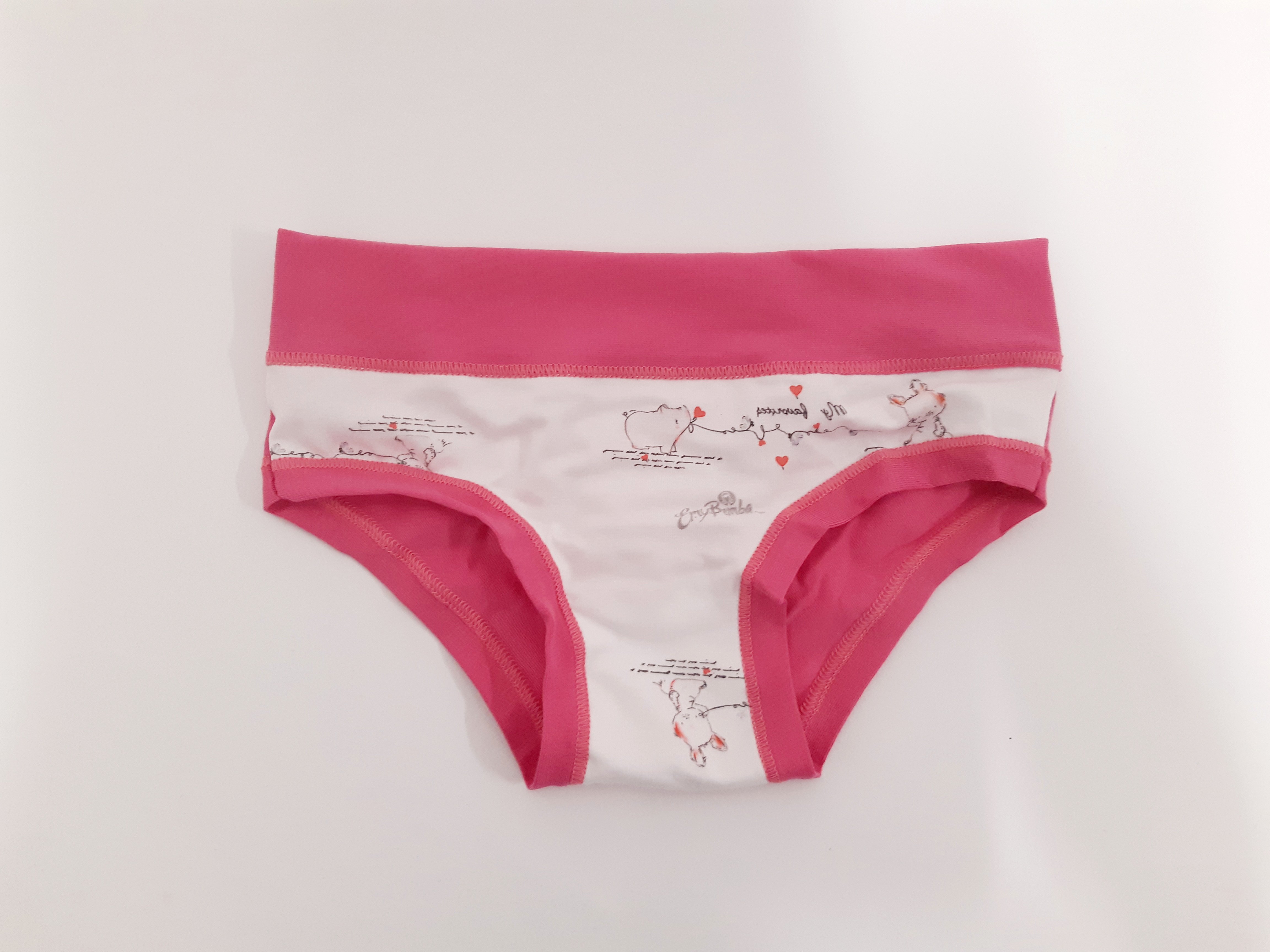 Moderní dívčí kalhotky Emy Bimba jsou velmi oblíbené. Díky kvalitnímu pružnému materiálu, kde je spojeno 90% bavlny a 10% elastanu jsou velmi pohodlné, ale také odolné. Kalhotky mají velmi pěkné, jemné barvy s laděným potiskem obrázku. Obvod v pase tvoří pružný širší úplet, nohavičky jsou volně přeloženy, a proto se nezařezávají. Do vnitřního dílu je všitý bavlněný klínek. Kalhotky nabízíme ve třech barevných variantách.