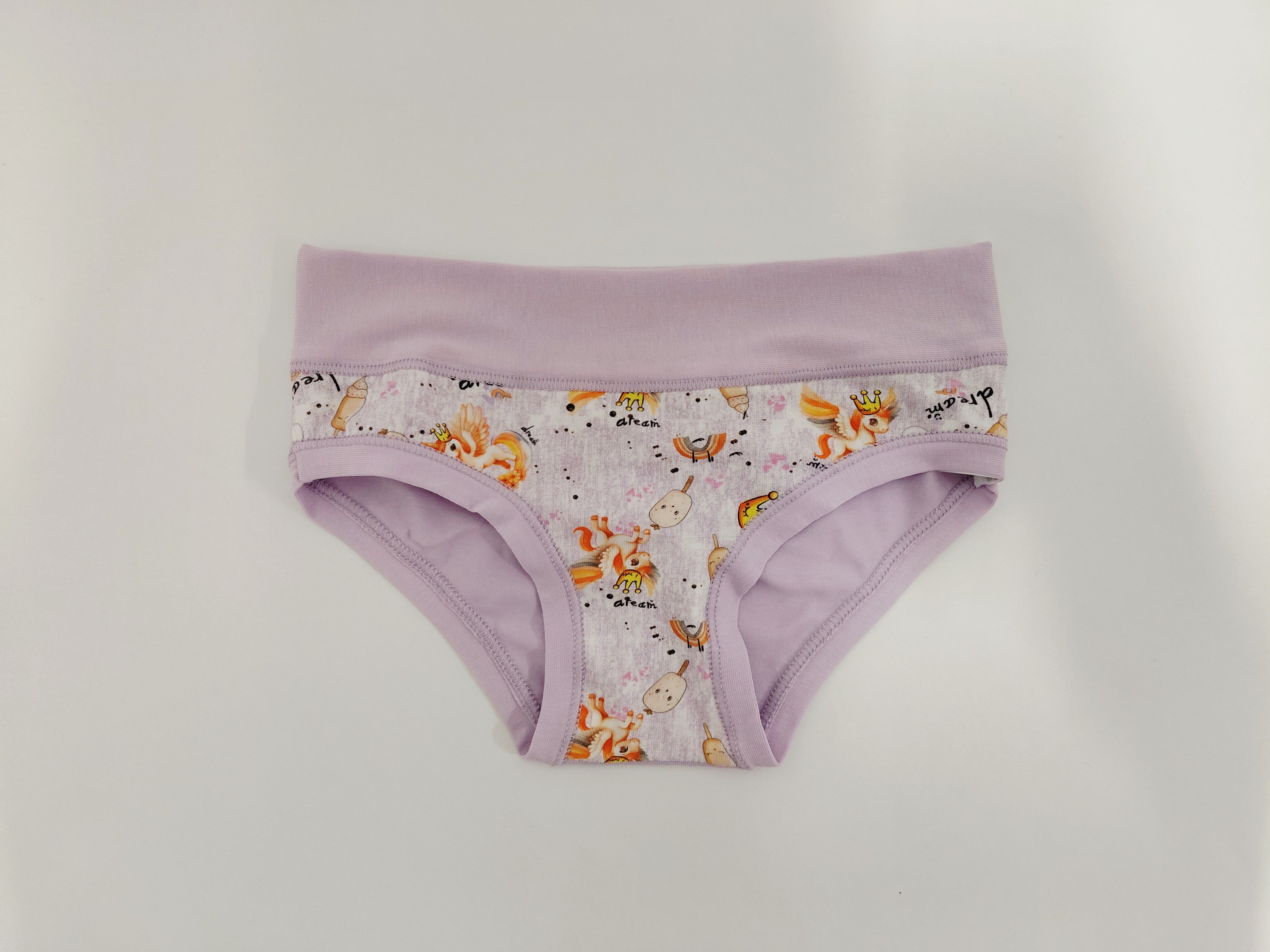 Moderní dívčí kalhotky Emy Bimba jsou velmi oblíbené. Díky kvalitnímu pružnému materiálu, kde je spojeno 90% bavlny a 10% elastanu jsou velmi pohodlné, ale také odolné. Kalhotky mají velmi pěkné, jemné barvy s laděným potiskem obrázku. Obvod v pase tvoří pružný širší úplet, nohavičky jsou volně přeloženy, a proto se nezařezávají. Do vnitřního dílu je všitý bavlněný klínek. Kalhotky nabízíme ve třech barevných variantách.